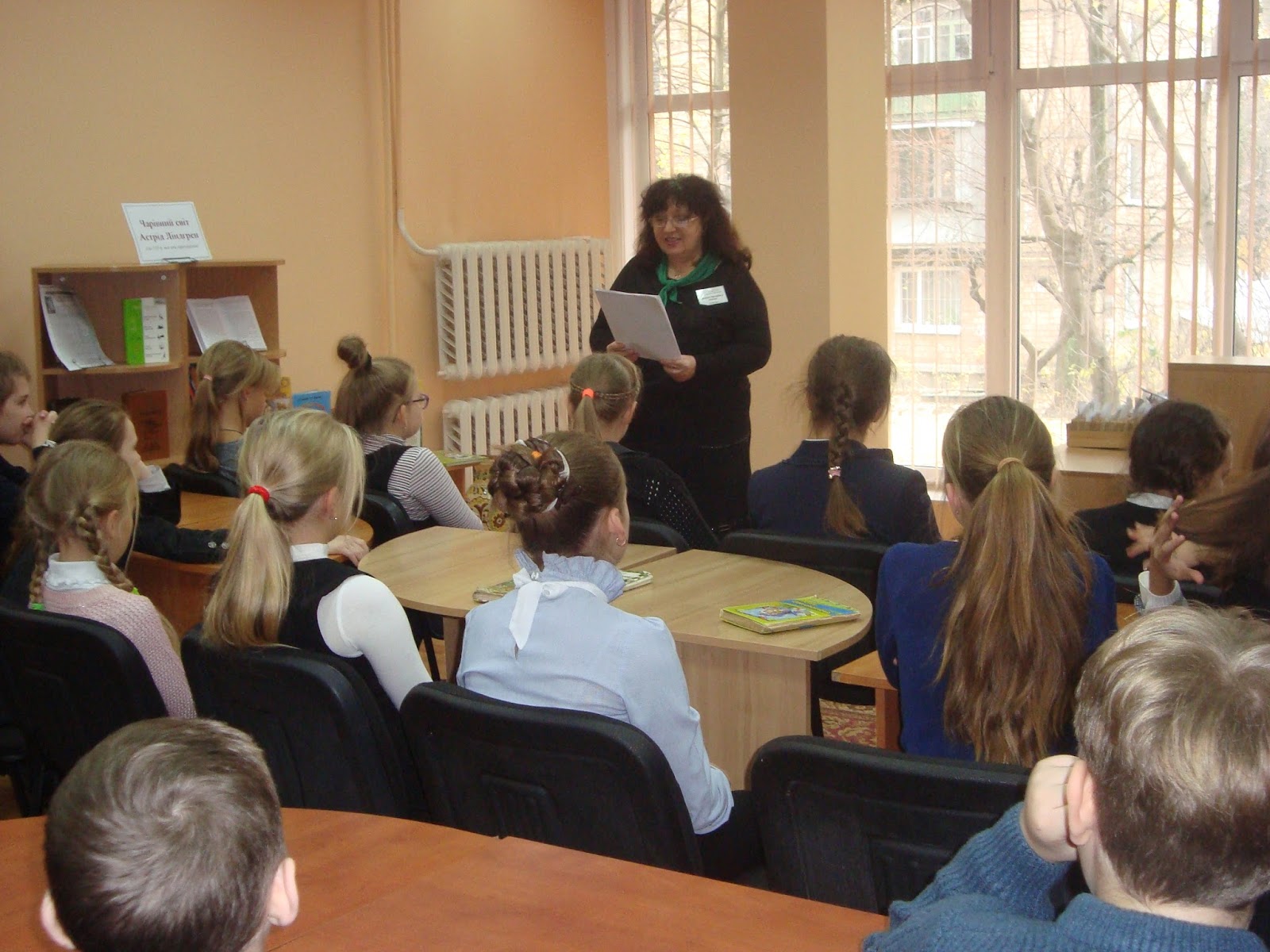14 листопада виповнилось 110 років від дня народження відомої шведської письменниці Астрід Ліндгрен. З цієї пам’ятної дати учні 4-В класу, із кл.керівником Ковальчук Л.В., відвідали дитячу бібліотеку ім.О.Донченка. До ювілею казкарки в бібліотеці пройшов захід - літературна подорож "Казковий світ Астрід Ліндгрен". Бібліотекар ознайомила дітей з цікавими фактами їз життя письменниці, розповіла про її творчість, зупиняючись на деяких творах, стисло їх переказуючи, провела бліц-турнір "Най-най-най...".