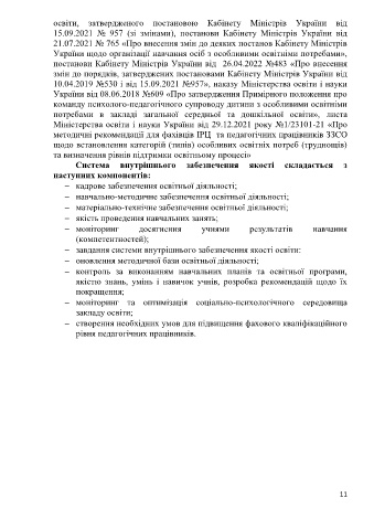 України щодо організації навчання осіб з особливими освітніми потребами»,
