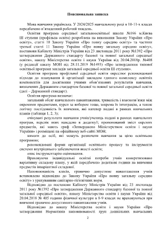 Мова навчання українська. У 2024/2025 навчальному році в 10-11-х класах